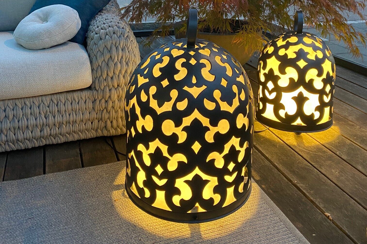 Die Lampe lässt die Umgebung in einem warmen und angenehmen Licht erstrahlen und ist die perfekte Ergänzung für Ihren Aussenbereich.